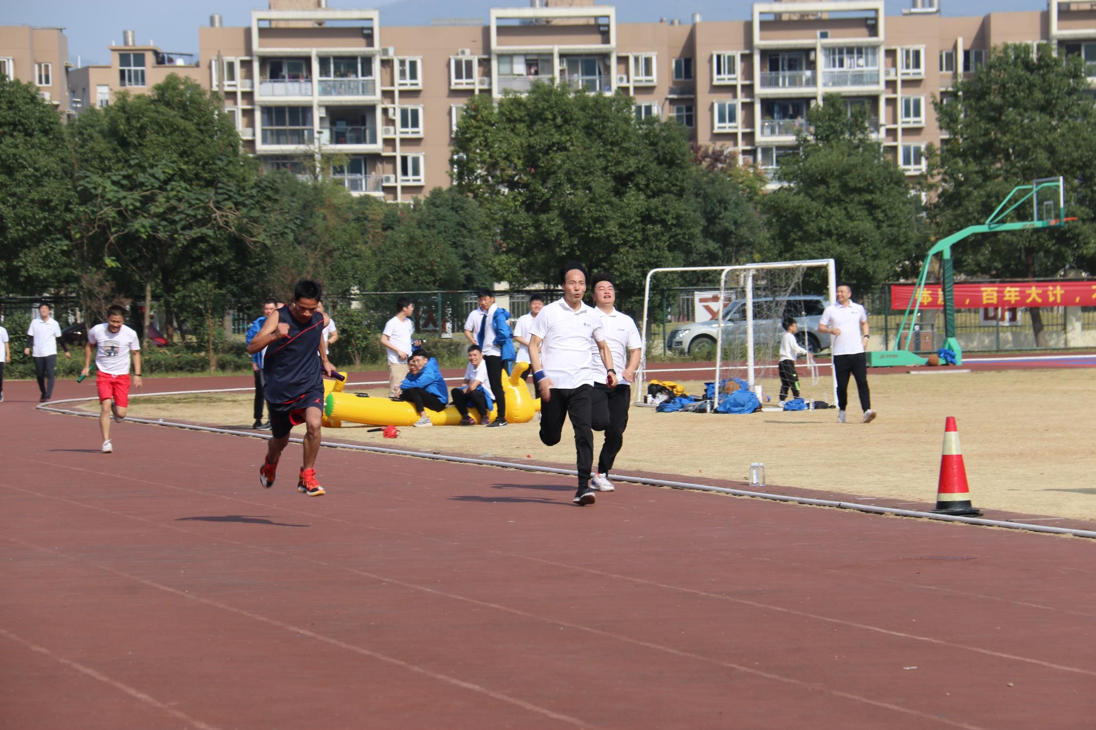 本屆運動會集競爭性、協作性、趣味性于一體,設男女4×100米接力、800米跑、拔河、三對三籃球等4項競技類比賽項目和旱地龍舟、五人六足、集體跳繩等3項趣味類比賽項目。賽場上隊員奮勇拼搏、你追我趕,激情的汗水揮灑在賽場,場下觀眾不時發出陣陣歡呼聲。