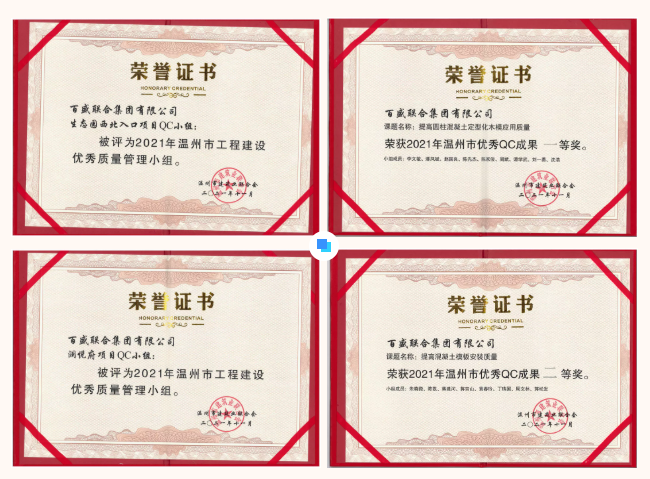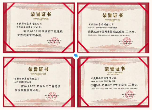 近年來,百盛聯合集團始終圍繞“百盛出品 必屬精品”質量管理理念,積極開展QC小組活動,將其作為提升質量生產管理水平的一個重要環節。集團每年都取得多項省市級獎項,不僅提高了企業的質量安全管理水平,還調動了員工的創造性、積極性,為集團后續“創優、爭獎”工作奠定了堅實的基礎,為企業降本增效、創新發展提供新能量!