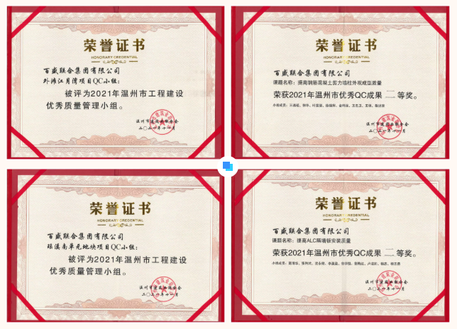 近日,在2021年度溫州市工程建設質量管理小組代表會議暨成果發布交流會上,百盛聯合集團有限公司一批QC小組、成果榮獲2021年溫州市工程建設優秀質量管理小組及優秀QC成果等獎項,再創佳績。