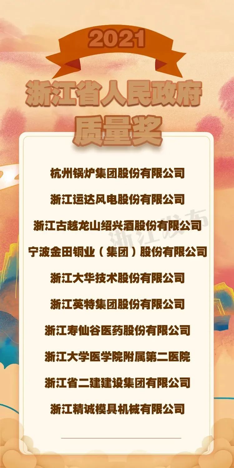 1月,浙江省政府公布了2021年浙江省人民政府質量獎名單,百盛聯合集團憑借在基礎設施領域投建營一體化的長期實踐和卓越的質量管理優勢,榮獲“2021年浙江省人民政府質量管理創新獎”殊榮。