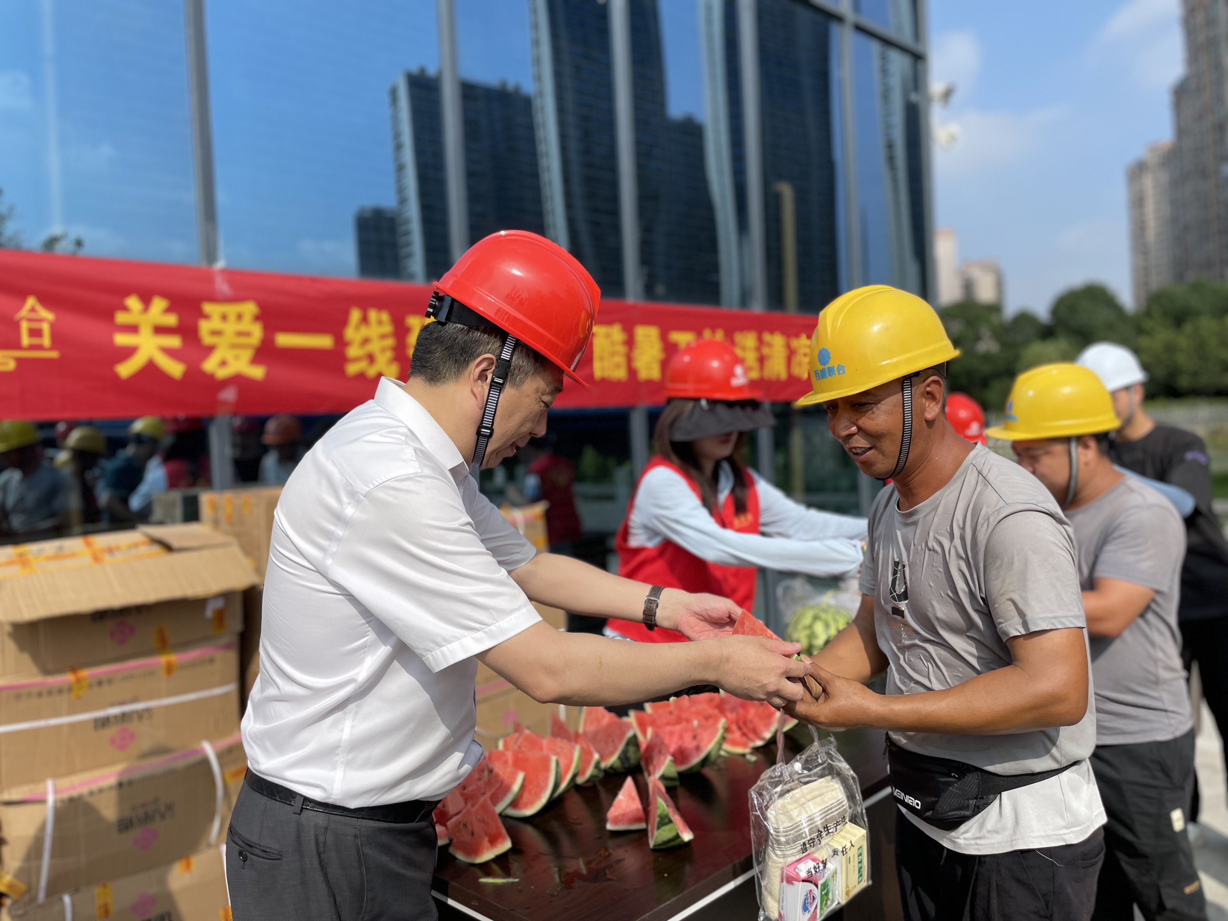今夏酷暑高溫,一線(xiàn)勞動(dòng)者依然堅(jiān)守崗位,用辛勤的汗水保障項(xiàng)目正常運(yùn)轉(zhuǎn)。為扎實(shí)做好防暑降溫工作,連日來(lái),集團(tuán)工程管理部牽頭,工會(huì)、黨支部積極參與,在項(xiàng)目部連續(xù)開(kāi)展“情系一線(xiàn)、夏送清涼”活動(dòng),給奮戰(zhàn)在一線(xiàn)職工送去關(guān)懷和慰問(wèn)。