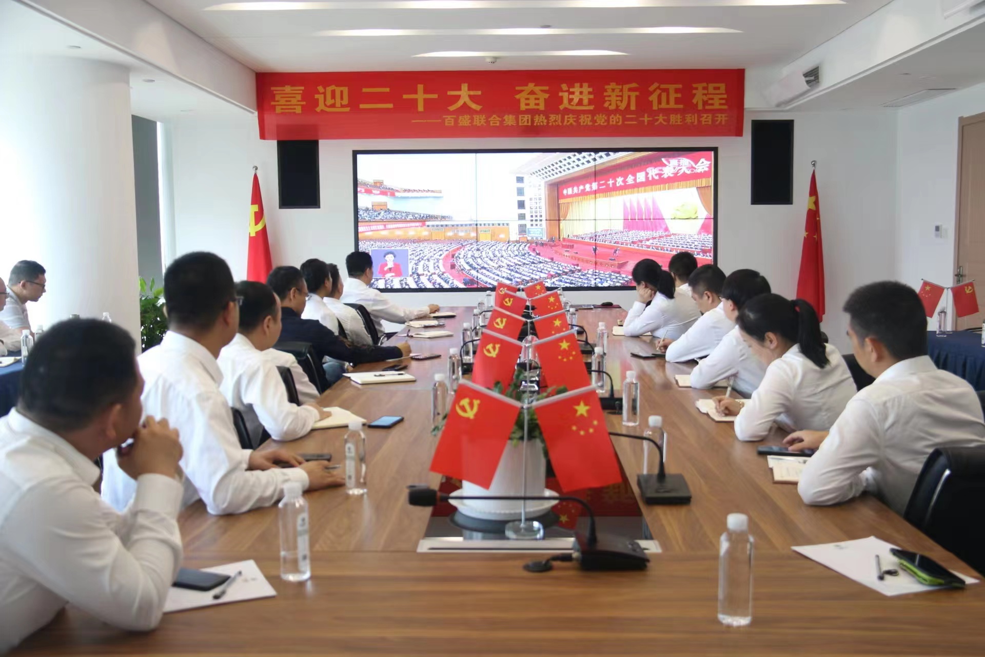 百盛聯合集團黨支部積極組織黨員群眾集中觀看黨的二十大開幕式實況直播,熱切關注這個對黨和國家具有深遠意義的盛會。觀看過程中,全體人員認真聆聽習近平總書記在大會上的報告,不時發出熱烈的掌聲。