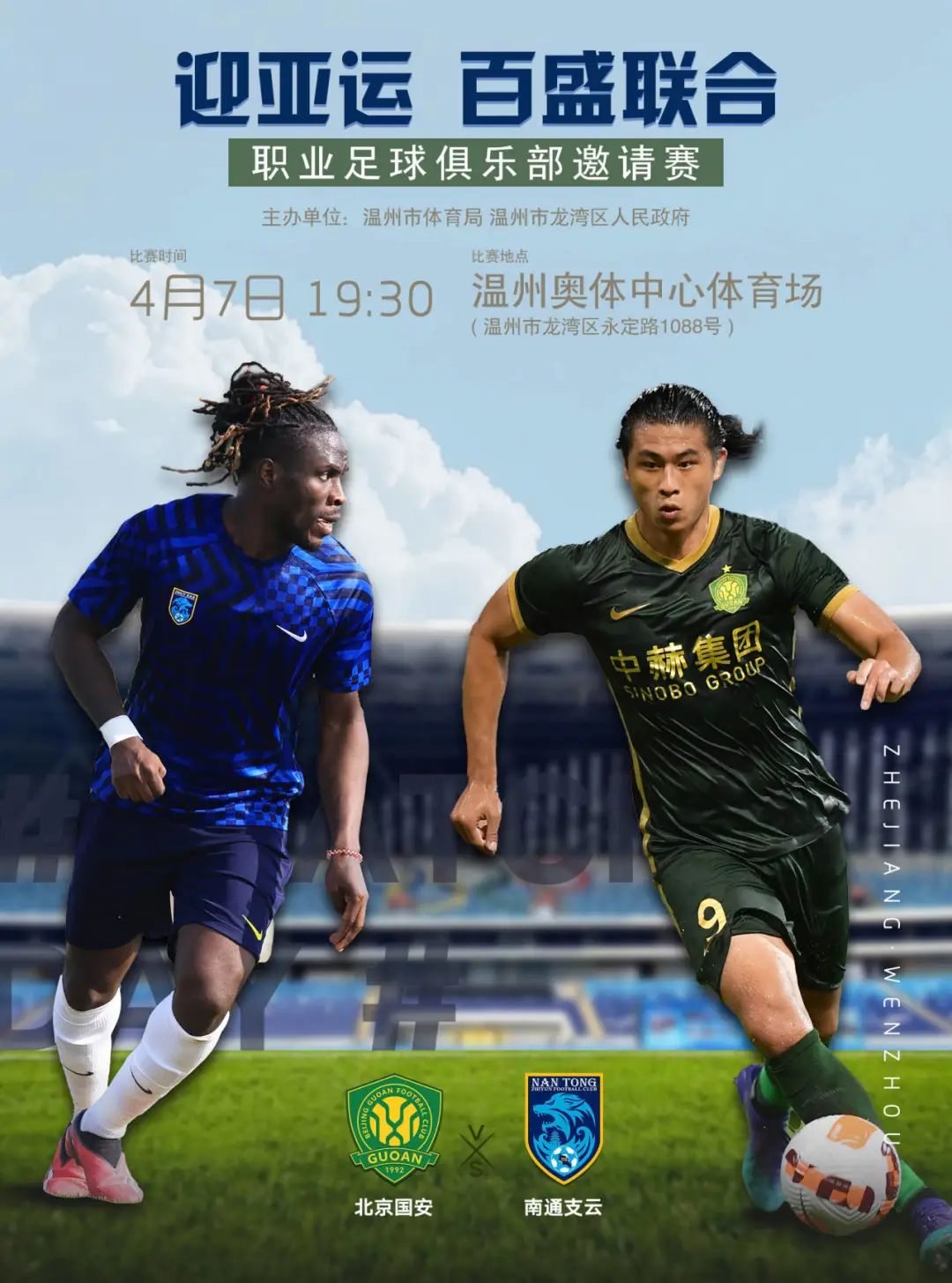 杭州亞運(yùn)會(huì)將于2023年9月23日至10月8日舉辦。屆時(shí),溫州奧體中心體育場(chǎng)將承接杭州亞運(yùn)會(huì)足球賽事。為做好亞運(yùn)足球賽事的籌備工作,4月3日和4月7日,四支中超球隊(duì)上海申花足球俱樂(lè)部、長(zhǎng)春亞泰足球俱樂(lè)部、北京國(guó)安足球俱樂(lè)部和南通支云足球俱樂(lè)部,將在溫州奧體中心體育場(chǎng)兩兩對(duì)決,進(jìn)行亞運(yùn)足球測(cè)試賽。