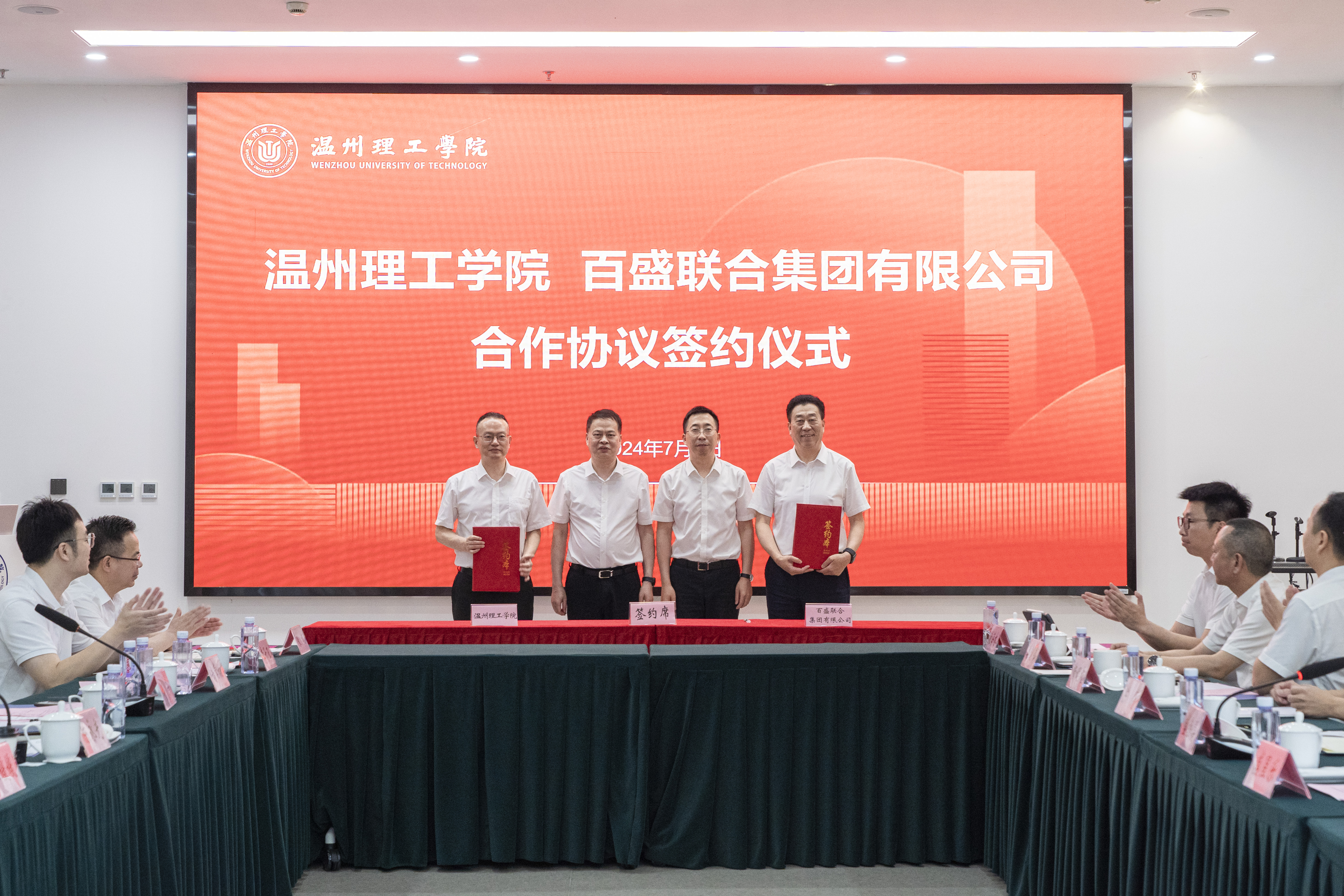 7月6日,百盛聯合集團與溫州理工學院在溫州理工學院濱海校區舉行戰略合作協議簽訂儀式。集團高層與溫州理工學院黨委書記陳永光、副校長鄭華等校方領導共同出席簽約儀式。