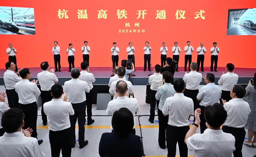 省委書記、省人大常委會主任易煉紅在省主會場出席通車儀式并宣布杭溫高鐵正式開通。省委副書記、省長王浩講話,國鐵集團黨組成員王立新致辭。省委副書記、杭州市委書記劉捷和省領導邱啟文、陳金彪、張振豐、尹學群出席,徐文光主持。中國鐵路上海局集團有限公司、杭溫高鐵社會資本投資建設方百盛聯合集團負責人介紹杭溫高鐵有關情況。通車儀式采用視頻連線方式舉行,省主會場設在鐵路杭州西站,浦江站、仙居站、溫州北站設分會場。
