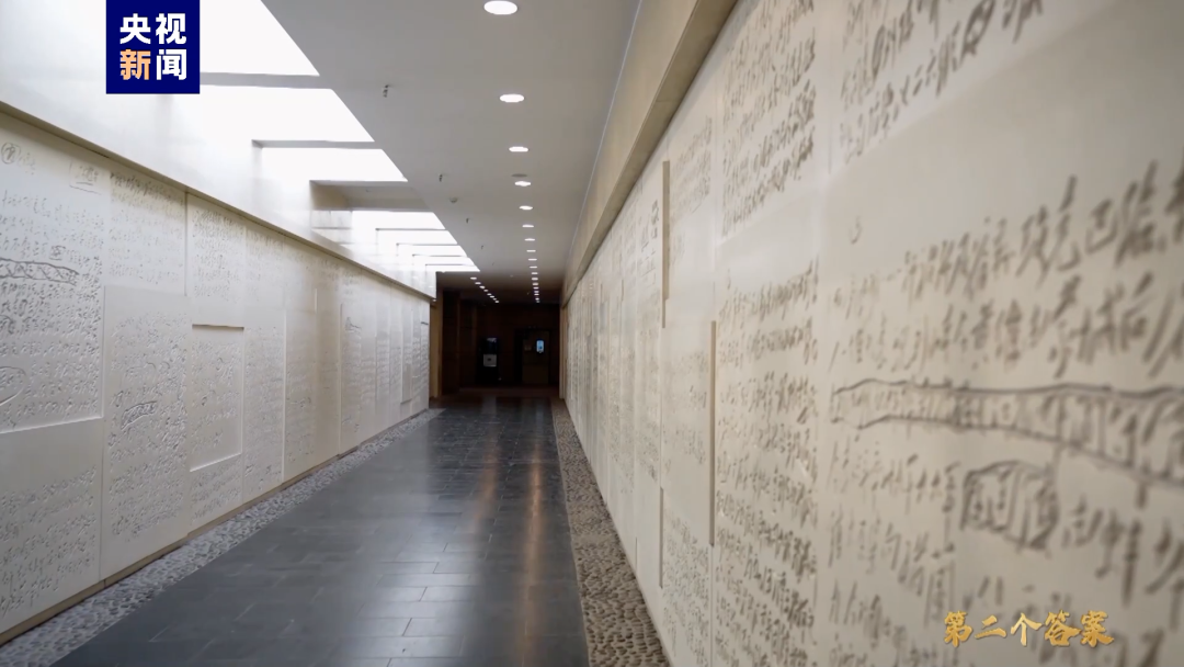 在河北省平山縣西柏坡紀念館有一條電報長廊,兩側墻面上鐫刻著37封電報手稿。